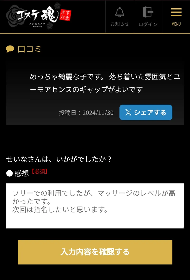 せいな さんの口コミ体験レポート