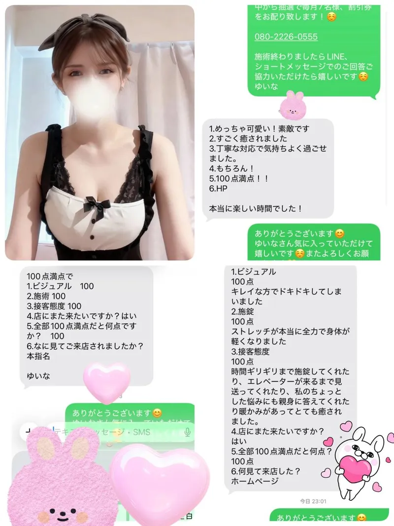 うさぎちゃんスパに在籍するゆいなさんの口コミや評判が気になっている方へ。 初めてメンズエステを利用する場合、予約方法や料金、当日の流れなど不安に感じることも多いはずです。 ここではゆいなさんを指名する前に知っておきたい基本情報をまとめています。